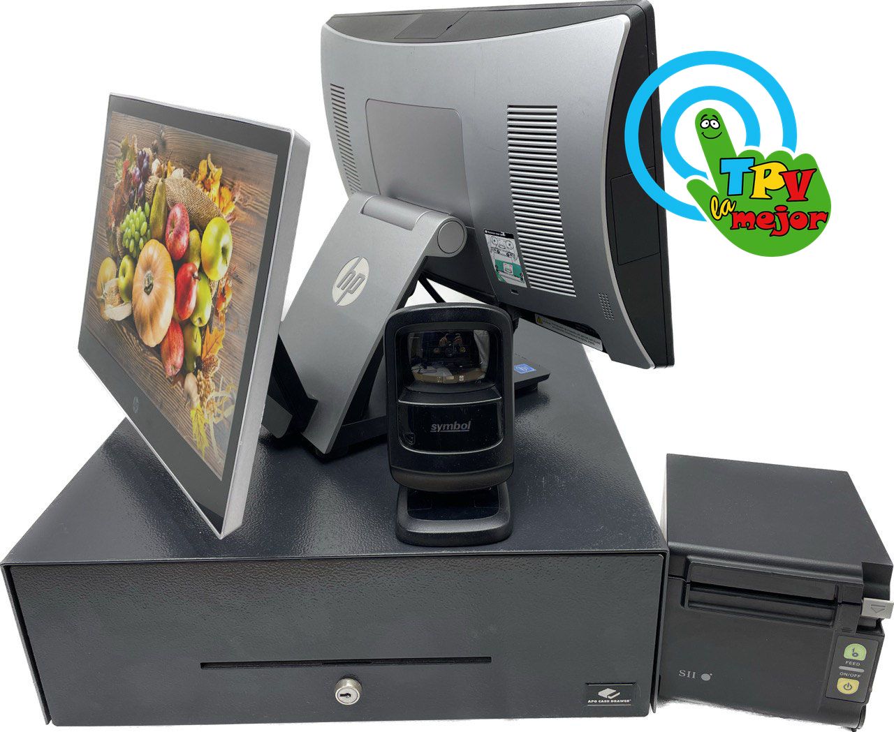 1.HP RP9 G1, Sistema TPV (POS) con dos monitores 15,6" táctil +14":